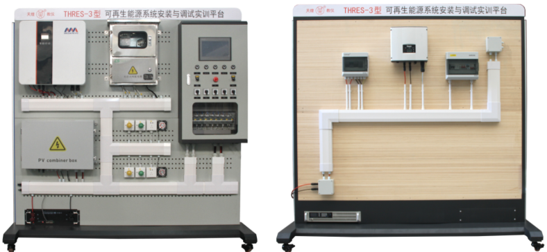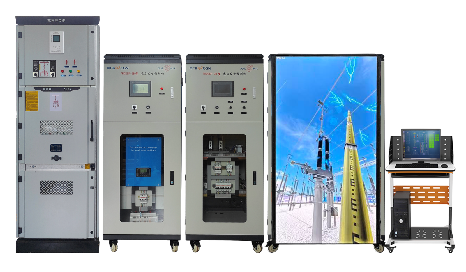 本产品由光伏阵列、风力发电机组(或模拟电源)、光伏并网逆变器、风电变流器、输电线路、升压站、负荷以及无穷大电网等组成。可实现新能源并网、输配电运行、开关柜操作及运维等知识和技能培训。可以作为电力类相关专业学生专业实训、技能竞赛设备,也可作为在岗人员技能提高的培训装置。