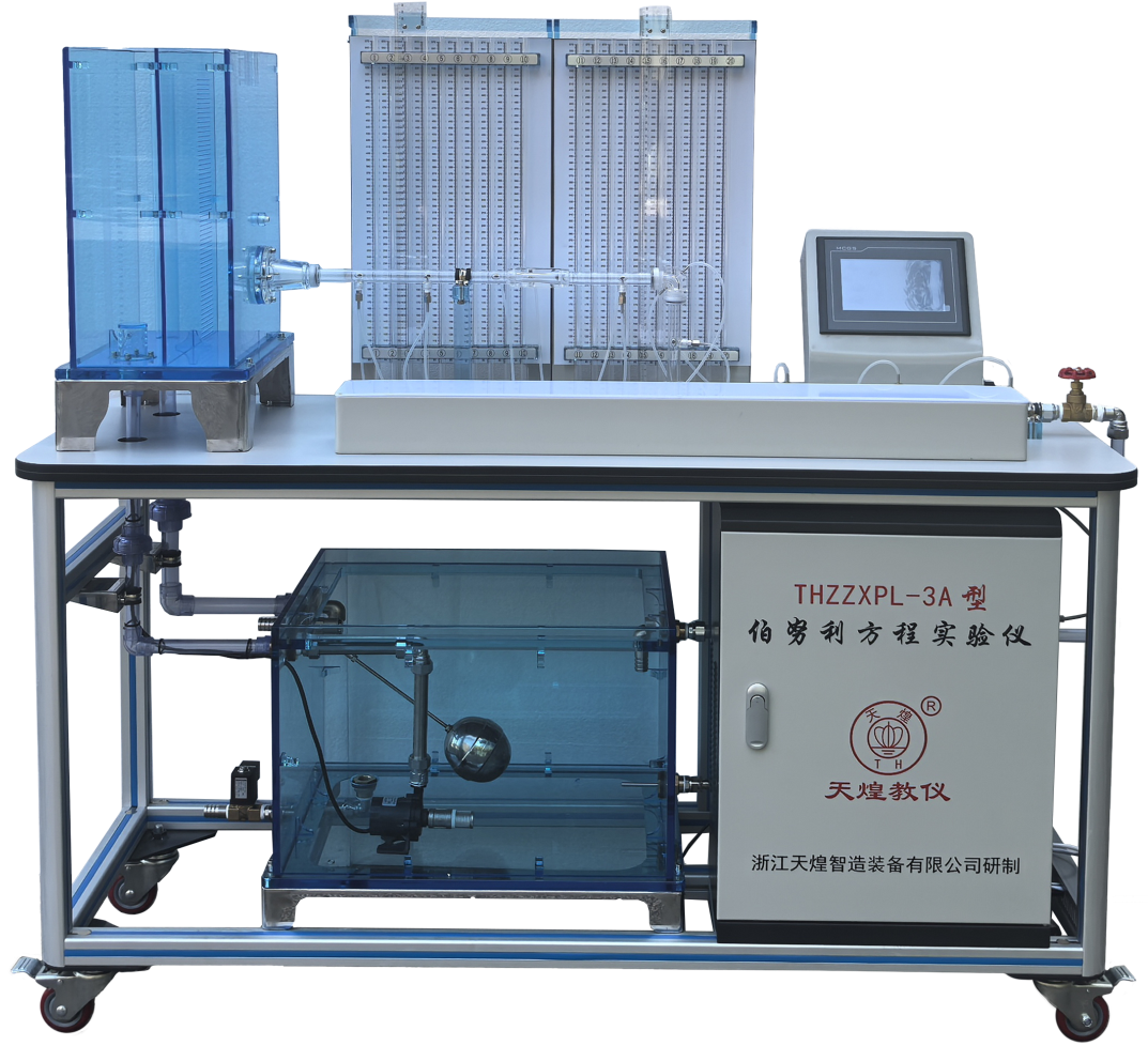 本装置用于验证伯努利方程,研究流体以恒定流速流经实验管特定截面上的总压头、静压头,熟悉流体流动中各种能量和压头的概念及其相互转换关系。