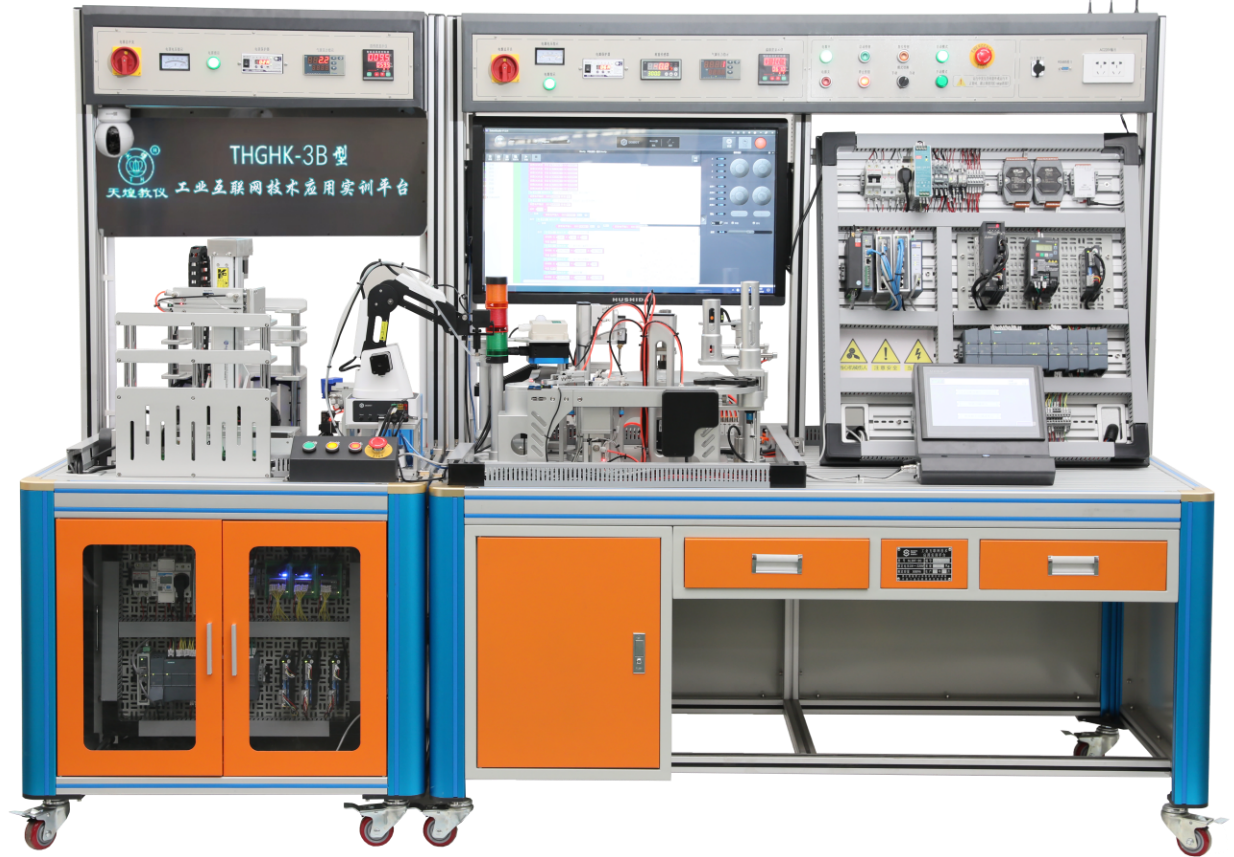 本平台为职业教育设计的工业互联网技术应用实训设备,整套平台以齿轮箱、气缸活塞的装配、质量检测、机器人码垛装箱、堆垛机立体仓储为应用场景,借助工业互联网、大数据、云计算等技术手段,构建基于数据采集、建模、分析的典型生产场景。以传感检测、RFID射频读写、条形码/二维码读码等为感知层,以PLC、采集模块、HMI为控制和显示单元,以工业交换机、无线路由器、串口服务器、Mudbus网关等为网络层,以气缸、变频电机、步进电机、伺服电机、总线控制阀为执行单元,以终端连接平台和工业互联网平台为平台层,实现工业产品组装、质检、装箱、入库的全流程自动化生产。可训练考核学生工业网络组网与配置、工业网关配置、工业互联网平台的集成应用(设备接入,数据采集、上云,数据可视化)等技术能力。适合中等职业学校、高等职业学校、本科职业学校开设的机电类、自动化类、电子信息类、计算机类相关专业以及相关职业的实训教学,也适用于工业互联网集成应用职业能力等级认证(初中级),还适用于行业企业员工的技术培训。