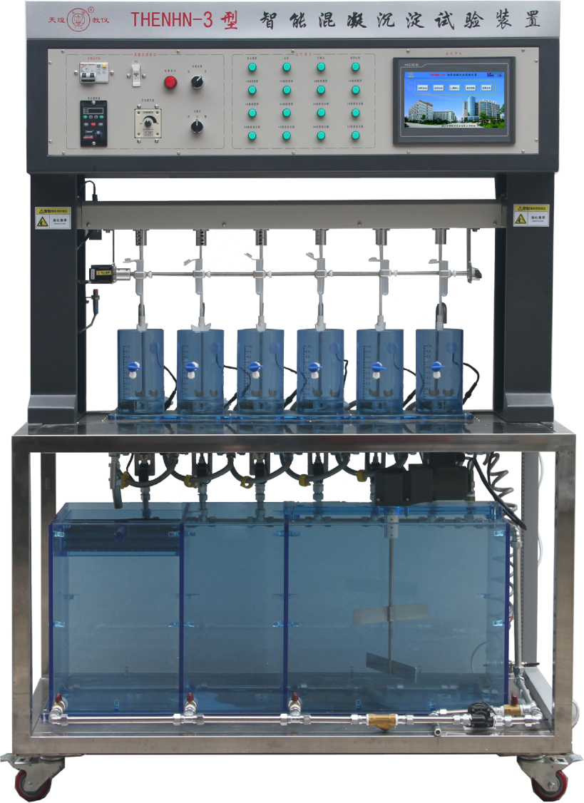本装置是一套综合性试验设备,被广泛地用于科研、教学和生产中,涵盖PLC控制技术、触摸屏操作技术、六联混凝试验技术、自动控制技术、液位监测技术、水样培养技术、废水处理回收技术、节能环保技术、反清洗技术、测温技术、软件分析技术等,学生通过试验装置进行混凝试验,选择出最佳的混凝剂种类,确定最佳投加量,通过PLC控制程序的选择或修改确定最佳搅拌速度和时间,可满足《水污染控制工程》、《环境工程》、《给水工程水处理实验技术》、《工业用水处理工程》以及《实用废水处理技术》等课程的实训教学,也可满足相关技能比赛的训练使用。