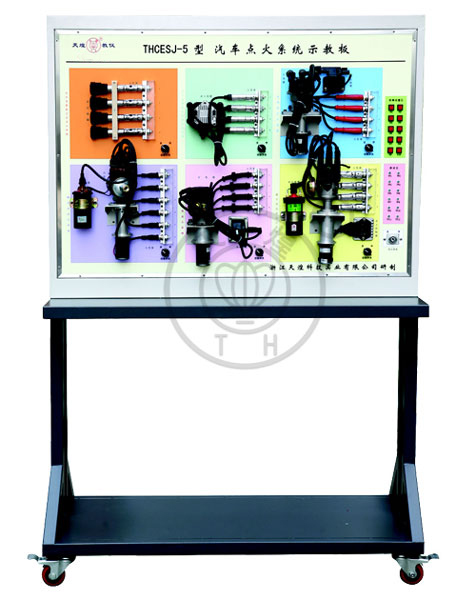 本示教板完整展示了汽车点火系统的发展历程及功能特点,设备包括触点式点火系统、磁感应式点火系统、霍尔效应式点火系统、光电式点火系统、无分电器双火花式点火系统和无分电器独立式点火系统等汽车真实点火部件,能动态演示各种点火系统的点火现象和过程,面板上设有相关测试点和故障设置开关,便于教师利用仪器仪表对其测试和故障现象模拟。
