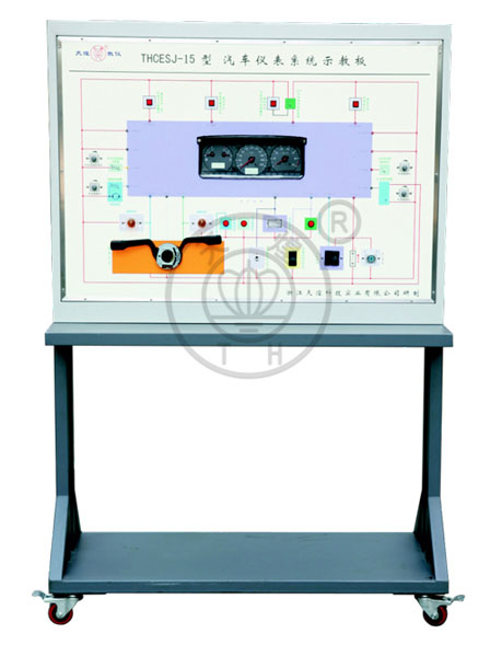 本示教板完整展示了上海大众桑塔纳2000原车仪表系统,设备包括大灯开关、组合开关、转向灯、后窗加热灯开关、行李箱指示灯开关、行李箱灯、制动指示灯开关等汽车真实部件,其余的设备采用专用电路进行模拟,能动态演示汽车仪表系统的工作过程,面板上设有相关测试点便于教师利用仪器仪表对其测量。