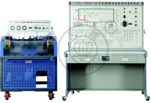 本实训考核装置采用全新上海大众桑塔纳2000使用的MK20-I型防抱死制动系统,整套实物对象包括了ABS控制单元、制动盘、制动鼓、变频器和电机等组成,其中电机带动四个车轮转动用来模拟汽车惯性,通过实训使得学生了解ABS制动系统的组成,对汽车ABS制动系统有更为直观的认识。本装置可设置典型的ABS系统故障,完成对学生的技能考核,也可用于职业技能培训和鉴定。
