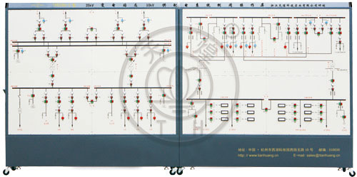 “THEEBG-1型35kV变电站及10kV供配电系统倒闸操作屏”是针对变电站倒闸操作而专门研制的实训装置。本系统含35kV、10kV和0.4kV三个电压等级:35kV具有4路进线,双母带联络;10kV侧采用单母分段,两入两出,环网供电;0.4kV侧采用单母分段,并具有备用发电系统。在此典型35kV变电站模型上,学生可以进行各种工况下的倒闸操作。变电站的电压等级和结线方式也可以根据用户要求设计。因此本装置适合各类职业院校供配电类、电力公司、职业技能培训部门等机构的培训、考核。