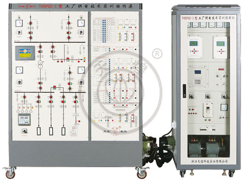 “THSPGC-1型工厂供电技术实训装置”是根据机械工业职业技能鉴定指导中心编写的《高级电工技术》、《电工基础(高级工适用)》、《电工技师培训教材》结合《工厂供电》和《供配电技术》课程研制生产的。主要对教材中的35kV总降压变电所、10kV高压变电所及车间用电负荷的供配电线路中涉及的微机继电保护装置、备用电源自动投入装置、无功自动补偿装置、智能采集模块以及工业人机界面等电气一次、二次、控制、保护等重点教学内容进行设计开发的,通过在本实训装置中的技能训练能在深入理解专业知识的同时,培养学生的实践技能。并且本套实训装置还有利于学生对变压器、电动机组、电流互感器、电压互感器、模拟表记、数字电秒表及开关元器件工作特性和接线原理的理解和掌握。